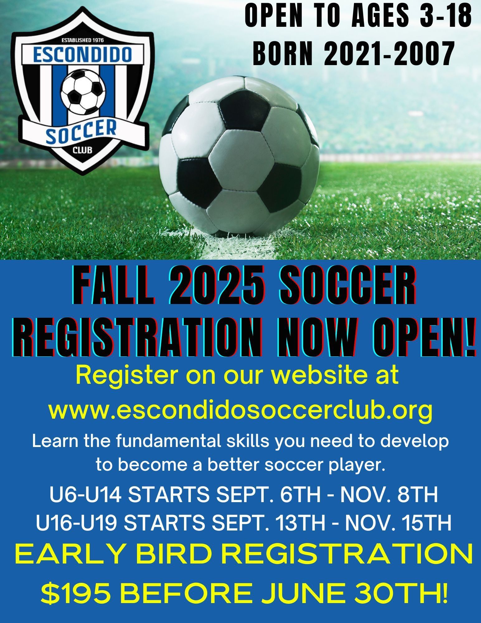 Questions/ Concerns? Email recregistrar@escondidosoccerclub.org